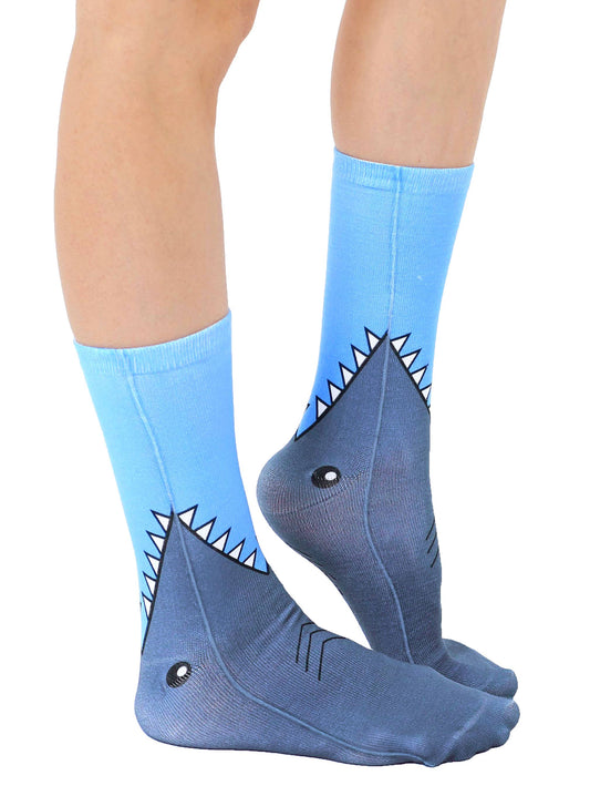 Novelty Graphic Crew Socks - Shark Bites - Blue