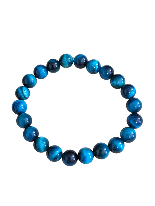 Dark Peacock Blue Tiger Eye Stretch Bracelets & Earrings Collection