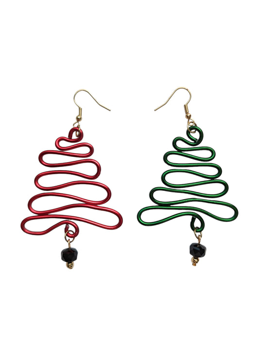 Mismatched Red & Green Christmas Trees Statement Earrings
