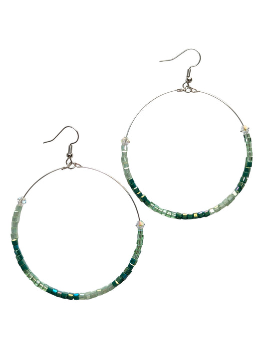 Sea Green Glass Bead Large Hoop Earrings with Swarovski® Crystals