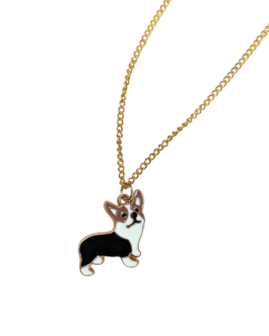 Enamel & Gold Corgi Charm Necklace, 18-inch Gold-Plated Cable Chain
