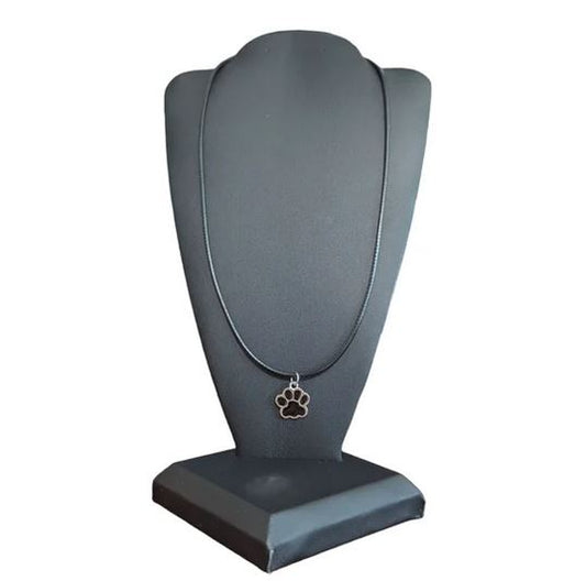 Black Enamel & Silver Dog Paw Charm on Cotton Cord Necklace