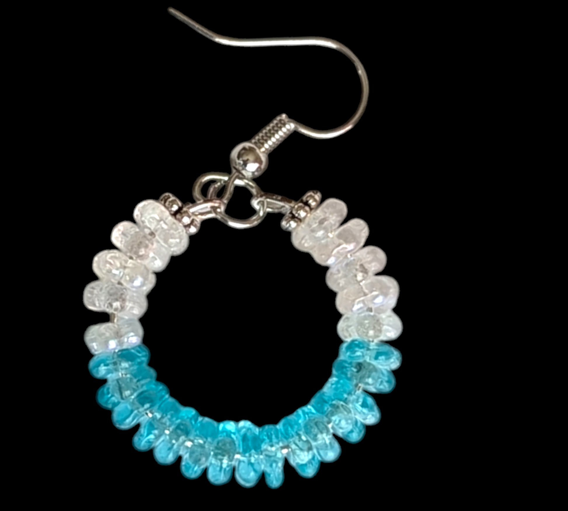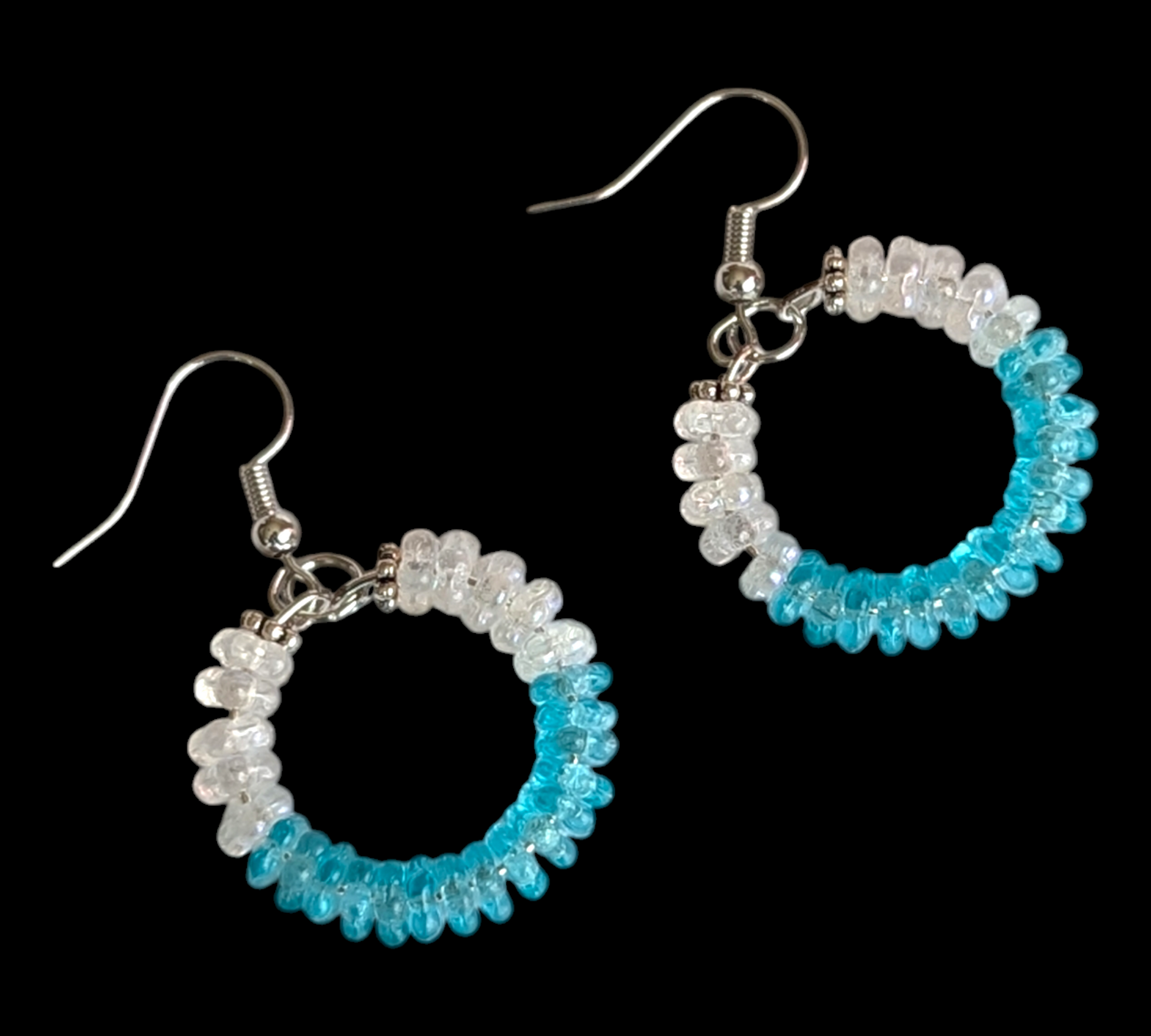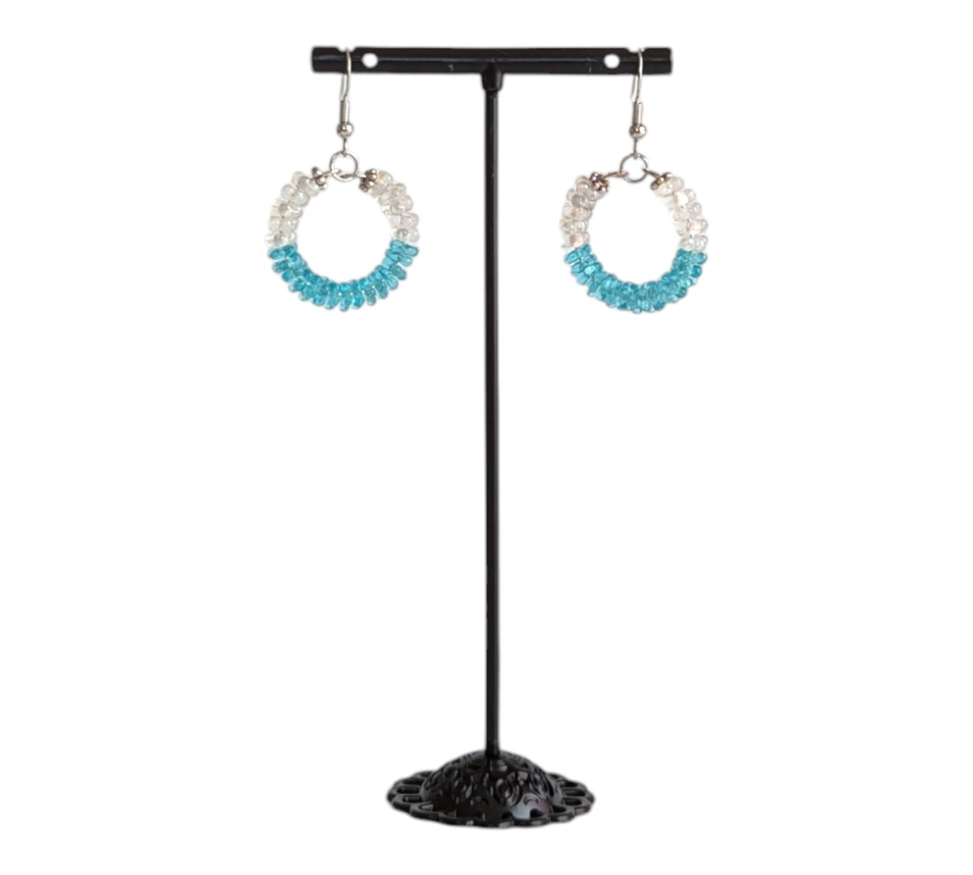 Adorables aros de 1 pulgada hechos con 5 cuentas de margaritas de vidrio checo perlado de 2 milímetros en color perla y aguamarina.