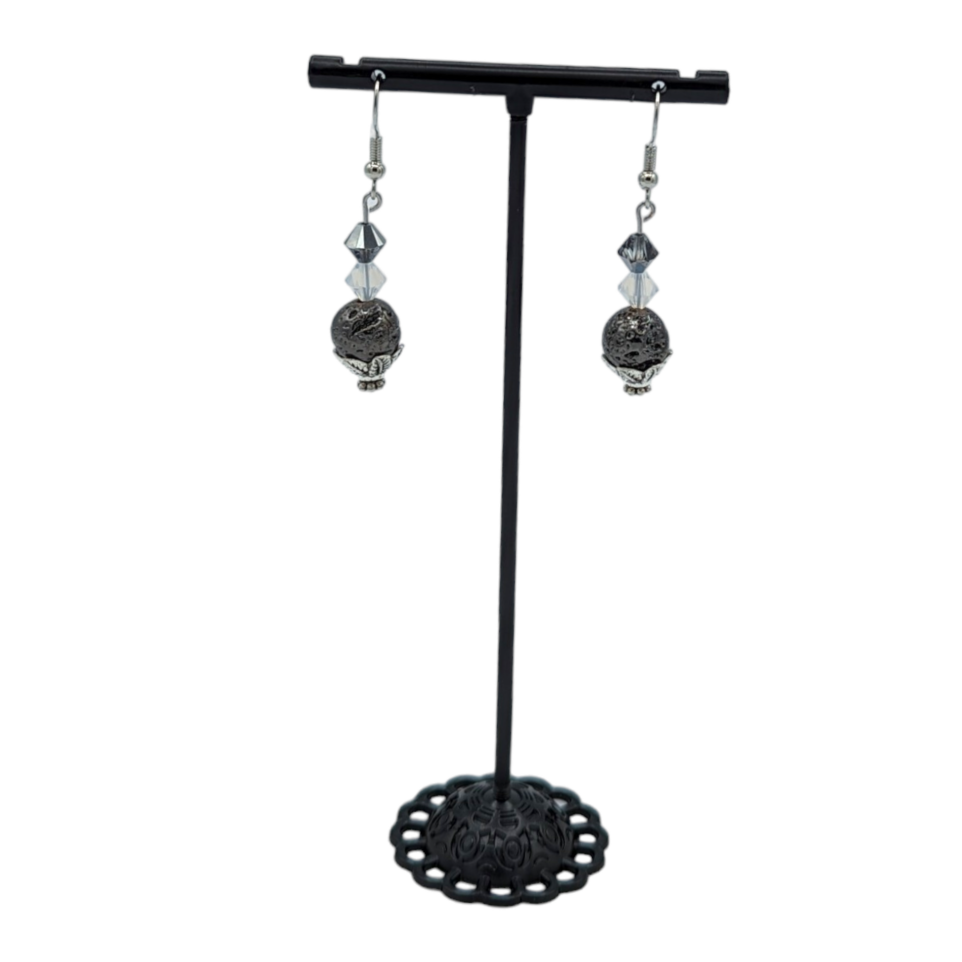 Disfrute del lujo liviano con nuestros aretes de cuentas de lava en color gris metalizado.