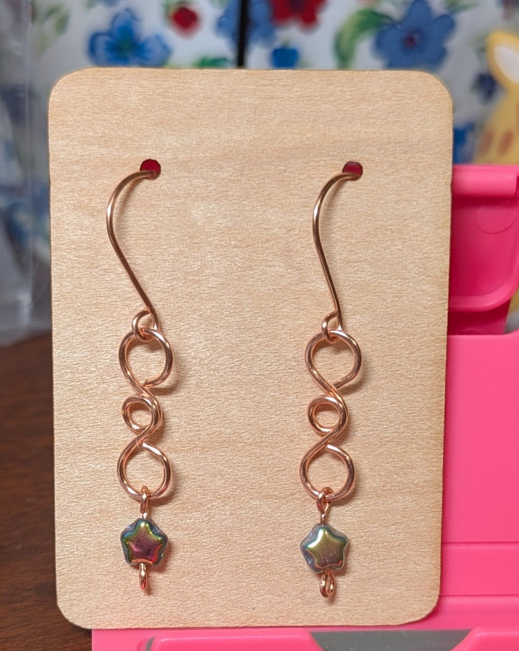These all-copper earrings will develop a unique patina over time, making each pair completely one-of-a-kind. The infinity design adds a touch of eternity to your look, while the star charm with pearlized white and shimmering gray sides adds a playful twist. Let the star move and watch it dazzle on both sides!
