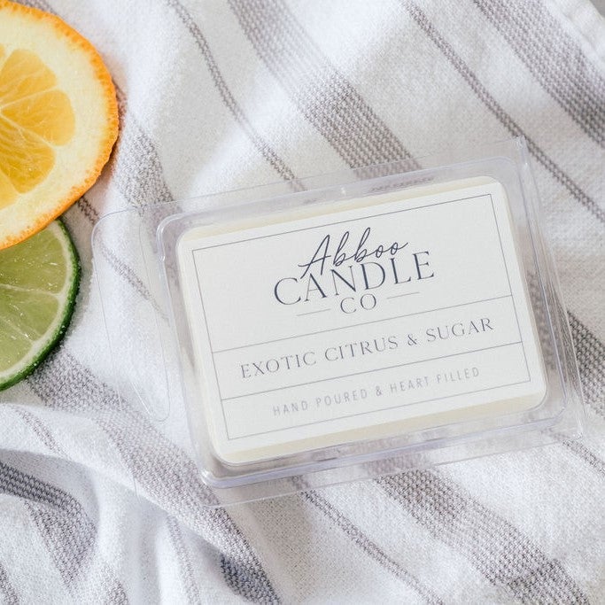 Indulge in an oasis of tropical bliss with Abboo Candle Co's Exotic Citrus & Sugar Soy Wax Melts!