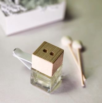 - 8 mL glass vial, housing the specially curated blend of scented oil and diffuser base, topped with an elegant wooden cap