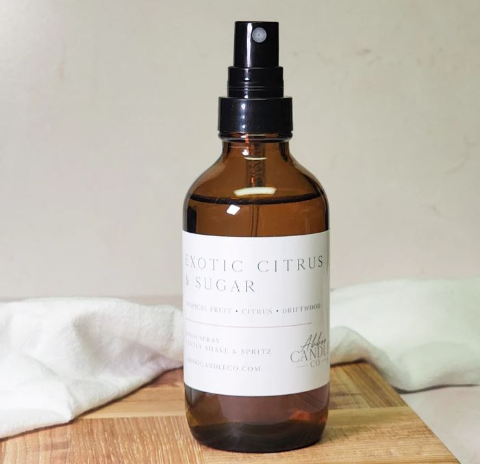 Ingredients: Water, Surfactant, Isopropyl Alcohol, Dipropylene Glycol, Paraben and Phthalate-Free Fragrance and Essential Oils. Abboo Candle Co's Room Spray base is biodegradable and VOC-compliant.