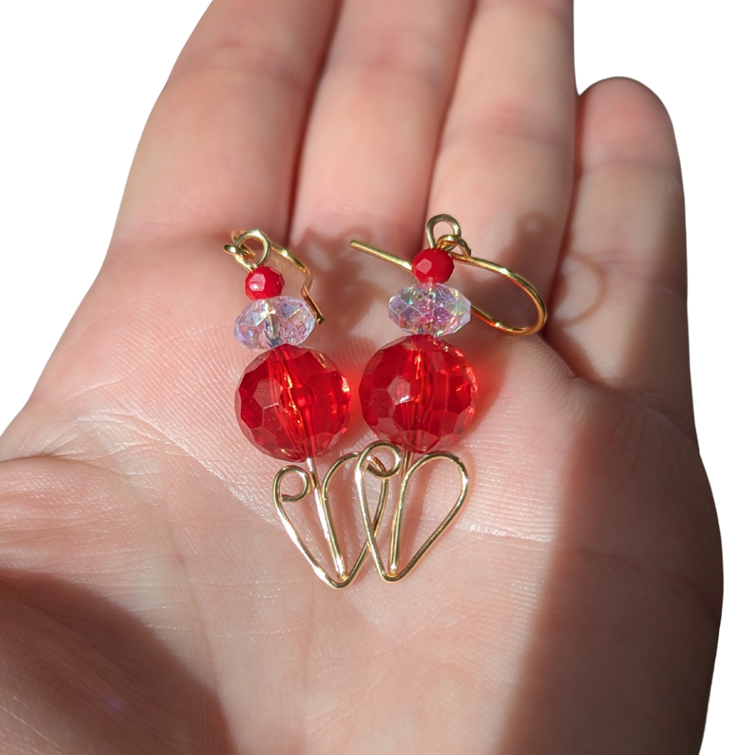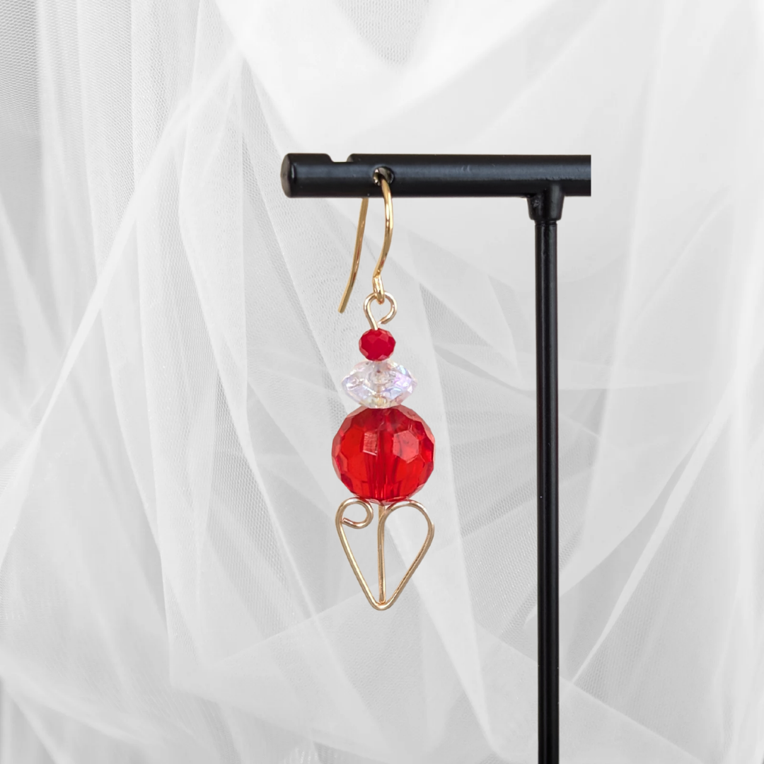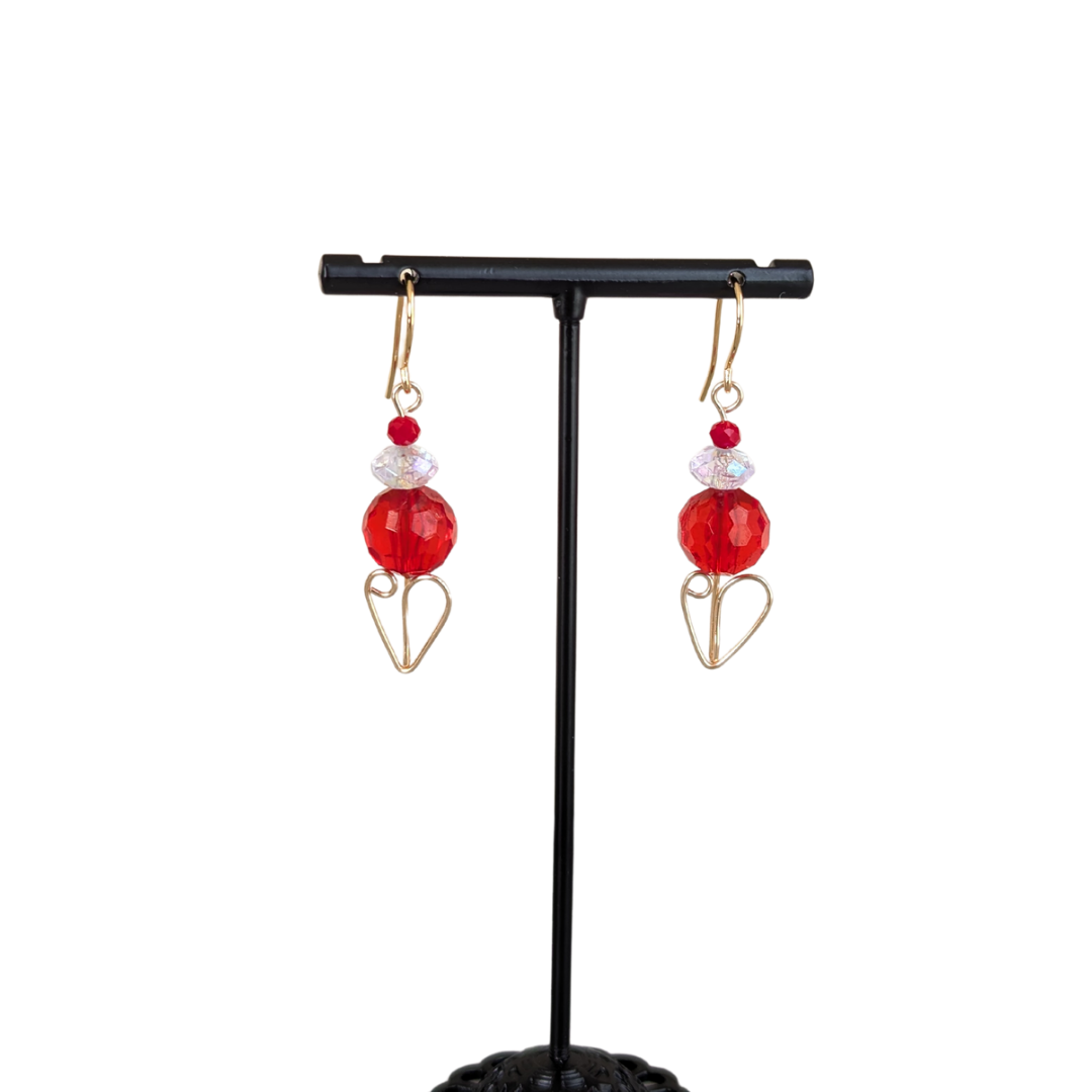 The ruby red and crystal faceted acrylic beads keep these fun earrings lightweight. And the best part? The cute wire wrapped gold heart!
