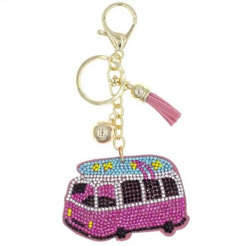Attach this blingy van to your purse or backpack with the attached lobster claw or use it as a traditional keychain with the attached key ring.