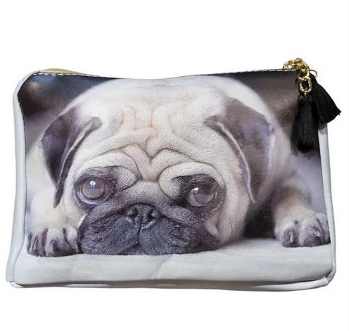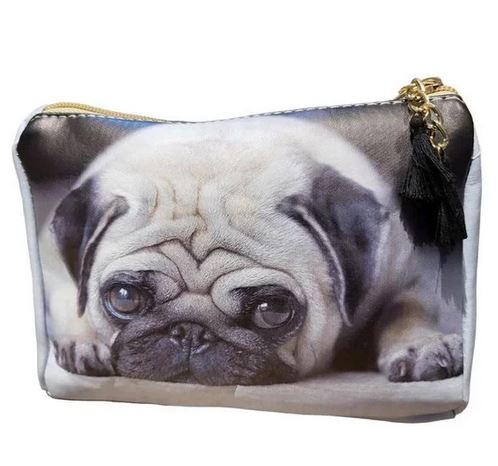 Carry this adorable pug with you as a makeup bag, school supplies case, travel bag, anything you like!