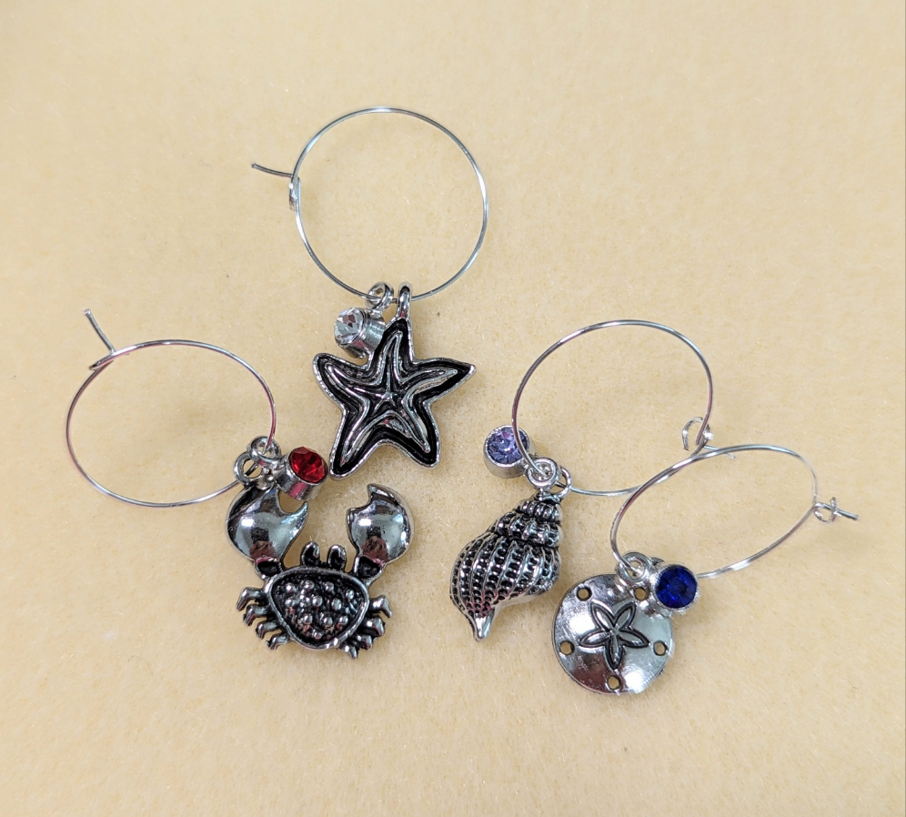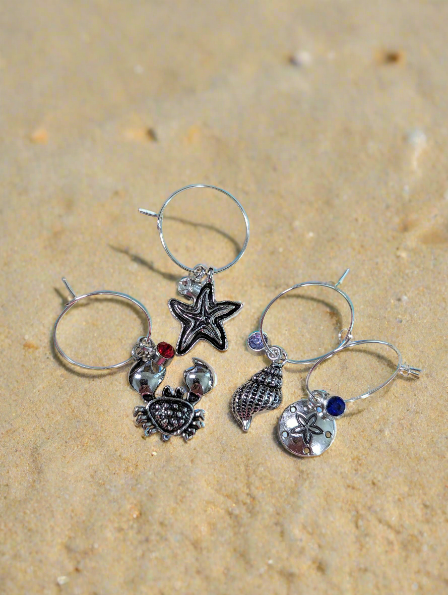 Sea Life Wine Glass Charms, Set of 4