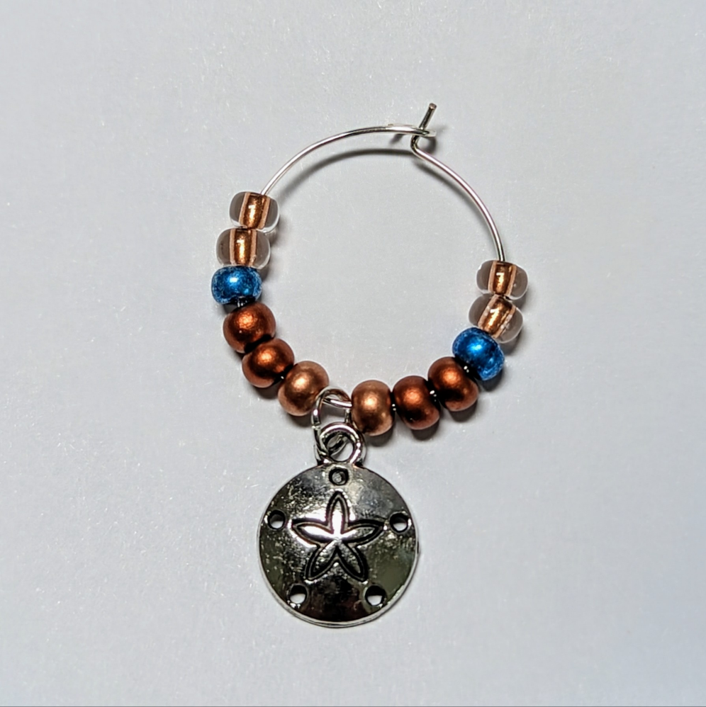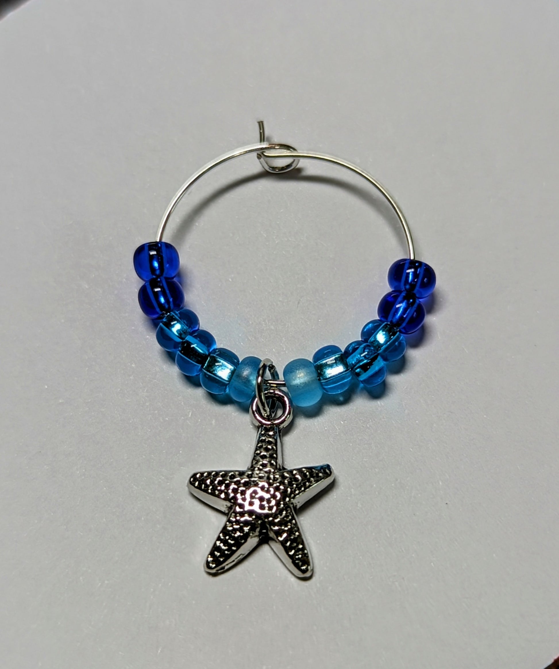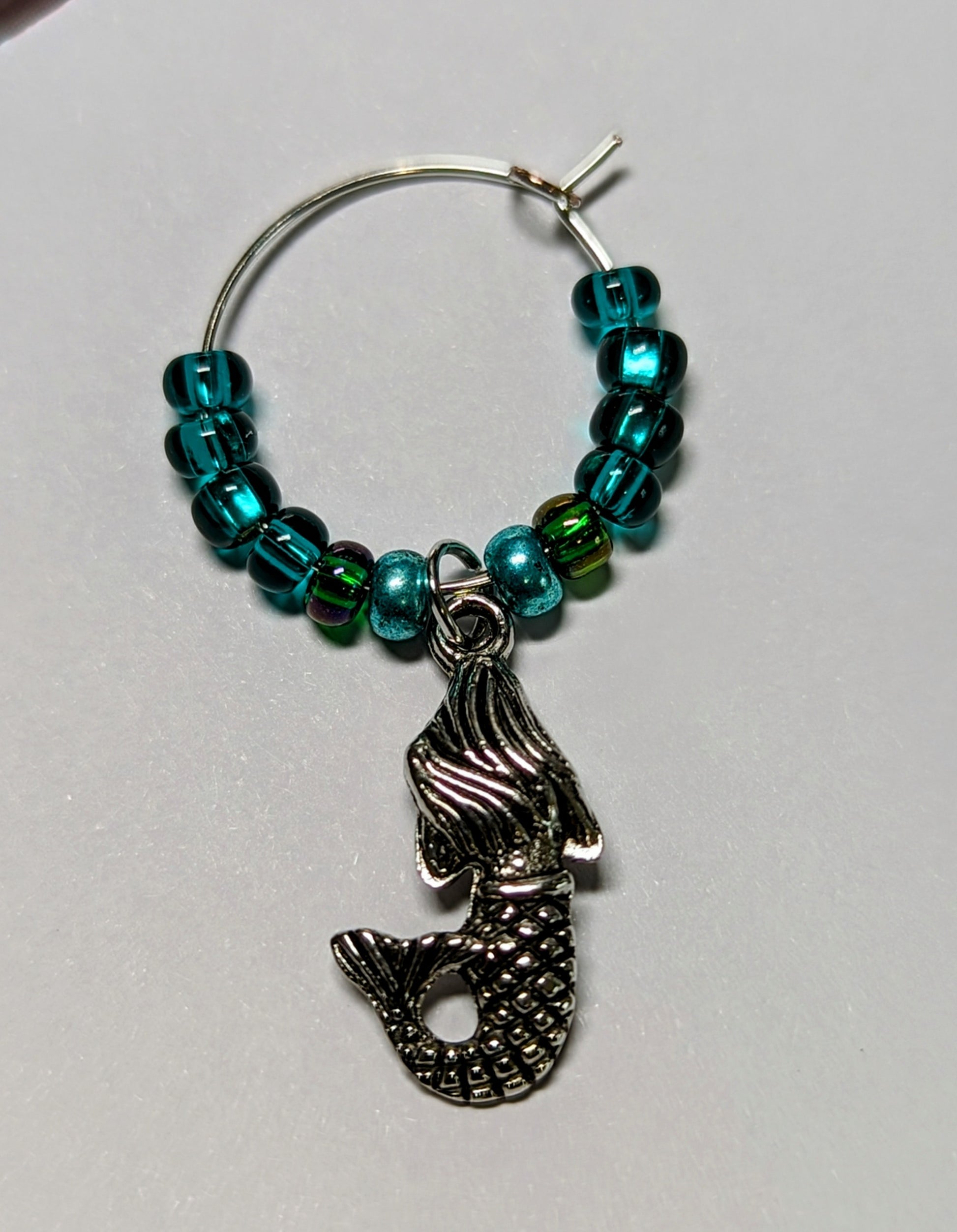 It's jewelry for your wine glass! It's our handmade "Under the Sea" wine charm collection. Use these at your next soiree so your guests will know which drink is theirs.