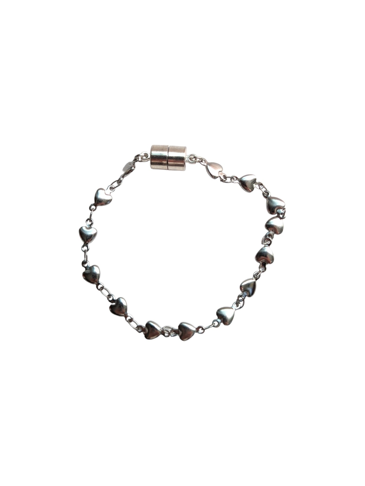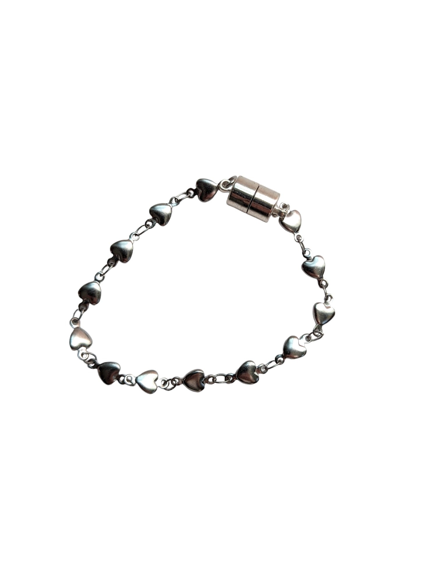 Stainless Steel Heart Chain Bracelet with Easy-Off/On Magnetic Closure