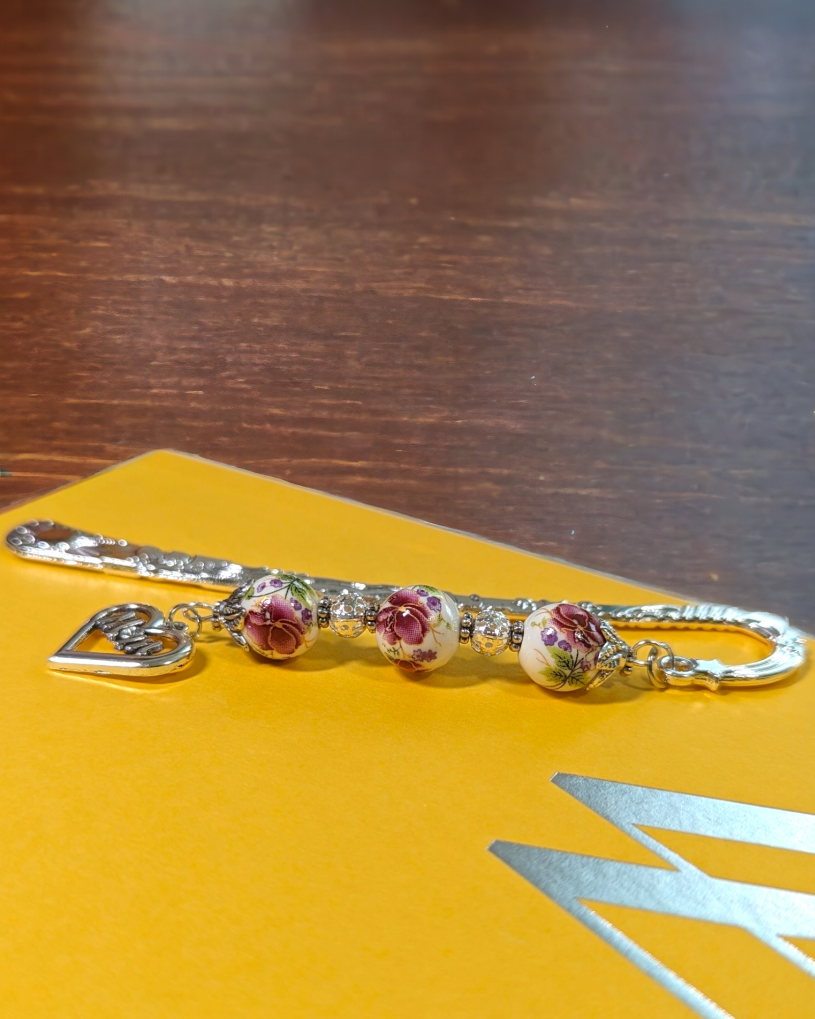 Sterling Silver Bookmark with Floral Ceramic Beads for Mom
