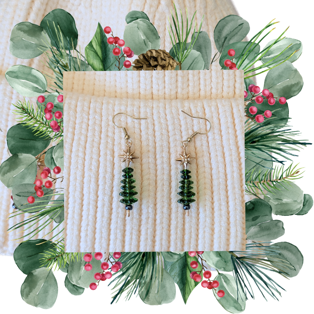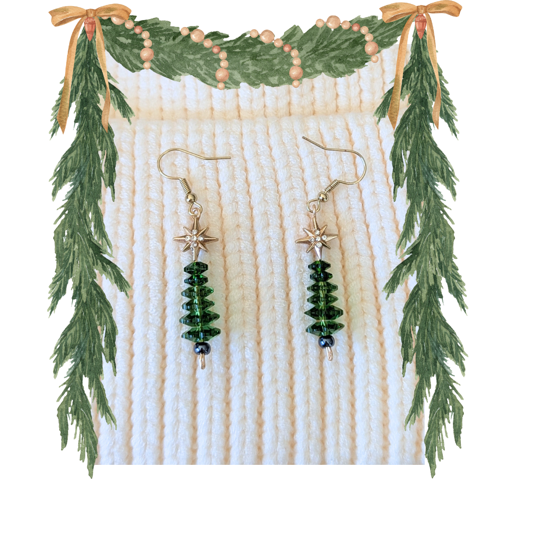 Deck your ears with festive cheer with earrings from our "O Tannenbaum" collection! These fun earrings feature a taller Christmas tree design (taller than the other trees in this collection) and feature a rhinestone-studded gold star at the top.