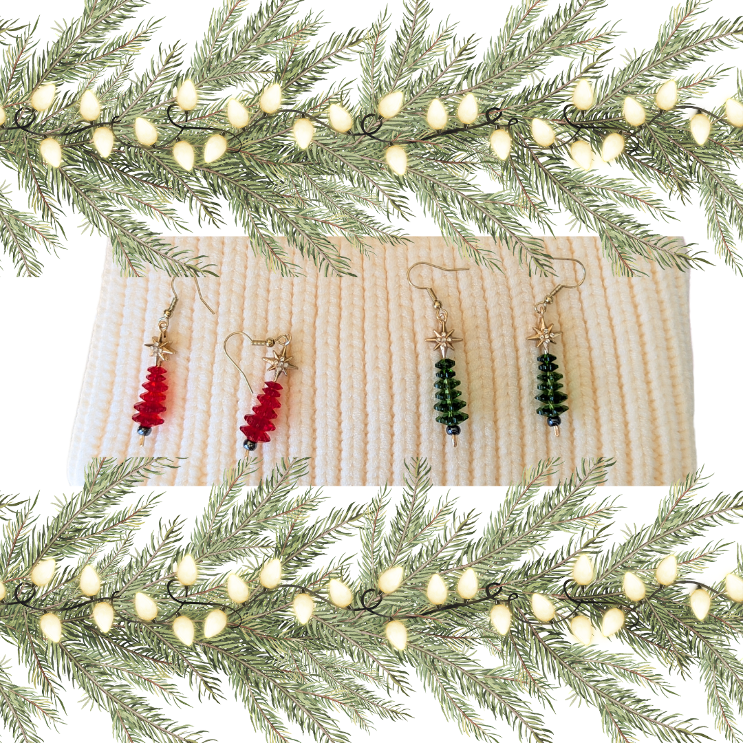 The "O Tannenbaum" Collection Earrings - Extra Tall Trees in Your Choice of Red or Green