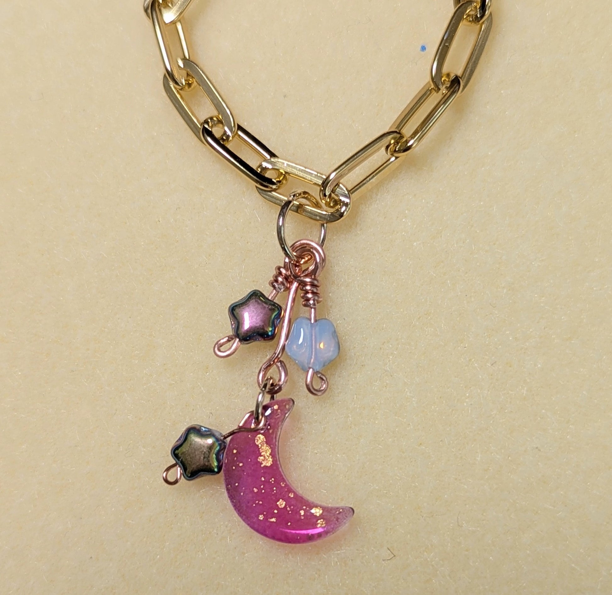 Dress up your tumbler with my handmade chain charms, featuring stars and a moon, in a unique mix of metals.